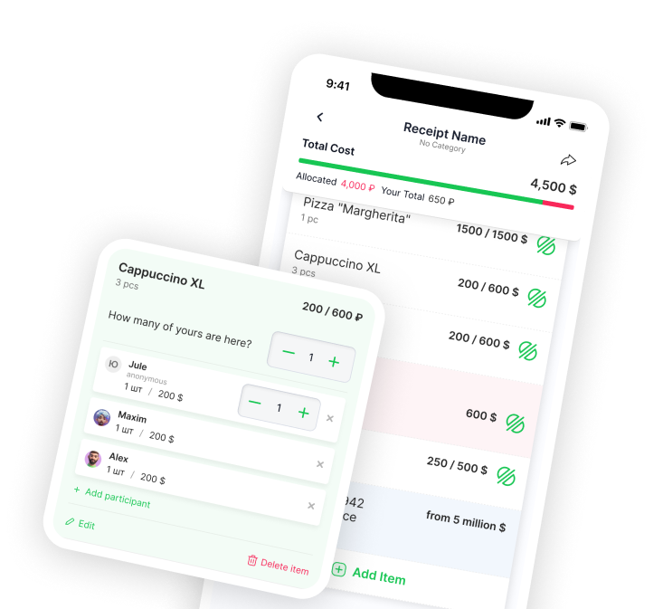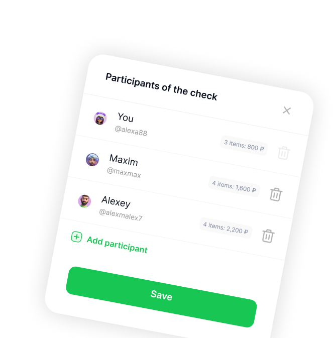 The user who created the receipt can invite participants by sending them a link to join, or the receipt can be created manually